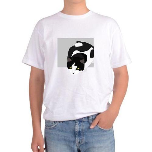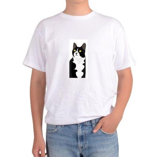 [에이치플러스몰]길단 아시아핏 반팔티 고양이 CAT 고양이 얼굴 노란눈 흰색과 검은색그림 다양한색상 전..