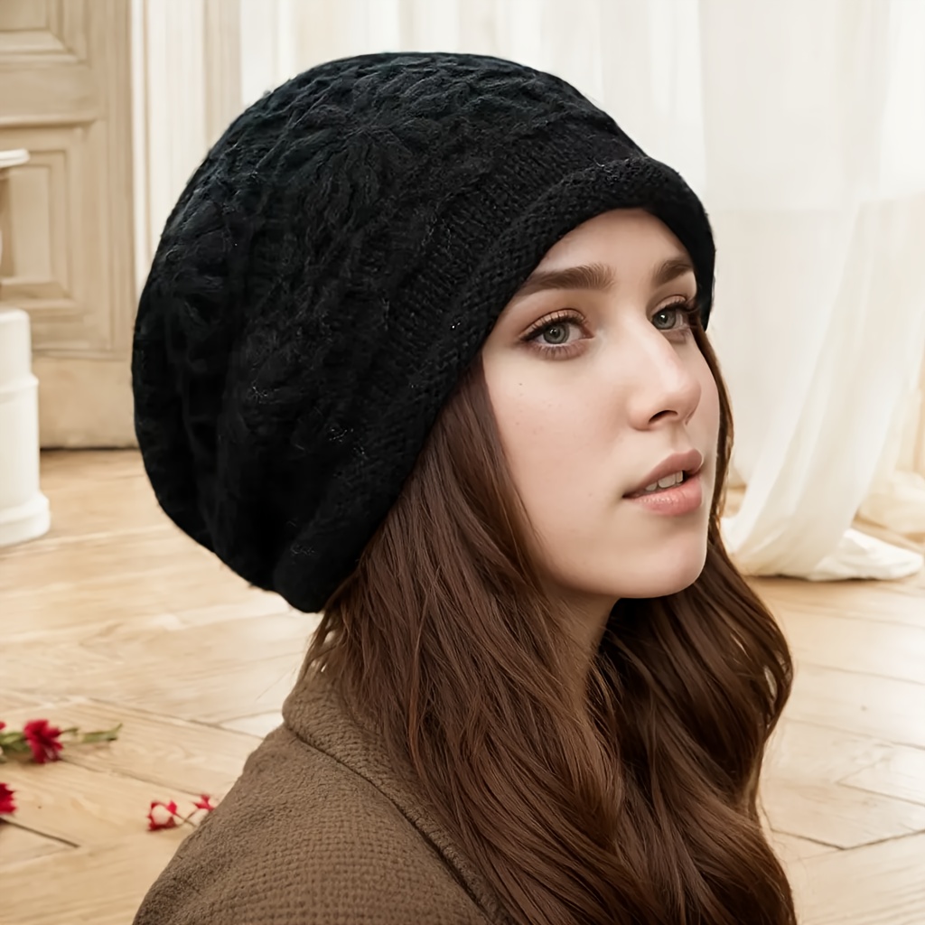 TEMU 여성용 2024 신상 비니 모자 - 수제 크로셰 스택 가능 겨울 캡, 부드럽고 탄력 있는 따뜻한 착용감, 추수감사절 & 캐주얼 아웃핏용, 포근한 패션 액세서리, 질감 디자인, 고품질 공예, 쇼퍼스
