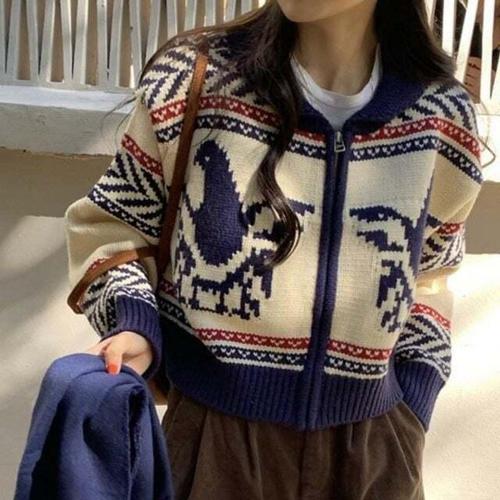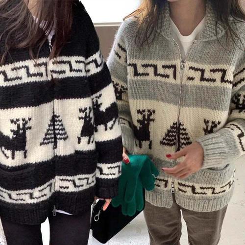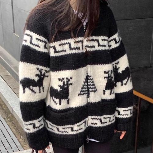[옷자락]여성 겨울 포근한 노르딕 울 혼합 집업 카디건
