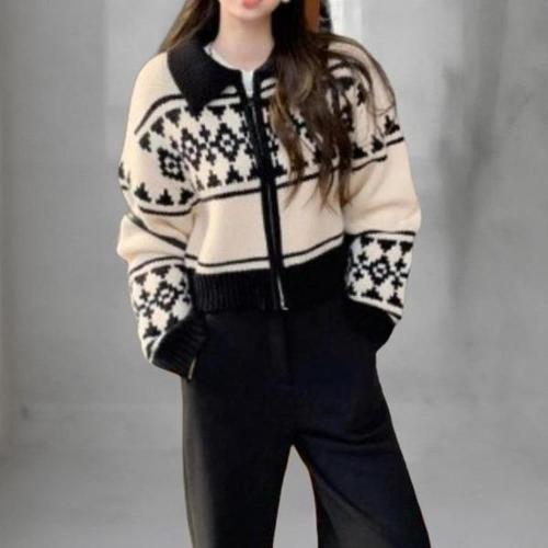 [셀럽하우스]여성 JGFY8946 겨울 노르딕 니트 집업 카라 도톰 가디건