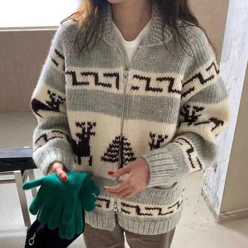 [셀럽하우스]여성 ZMOW9740 노르딕 집업 니트 가을 겨울 도톰 가디건 그레이