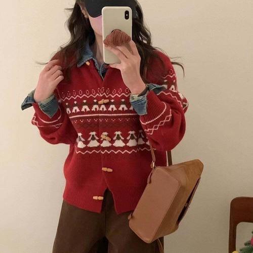 [셀럽하우스]떡볶이가디건 ZNLL6370 빨간색가디건 가디건 니트 노르딕니트