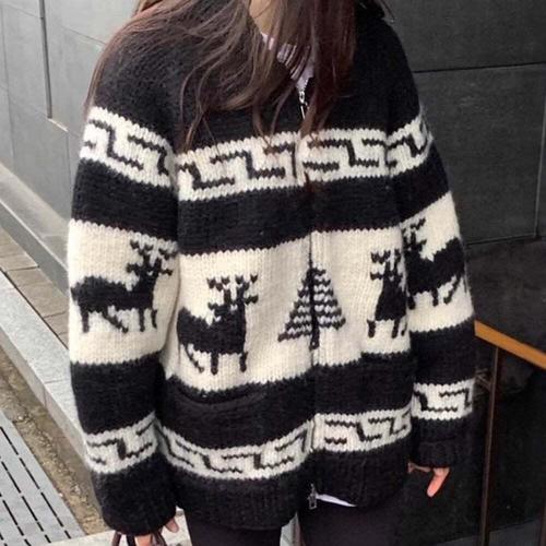[셀럽하우스]여성 UOQU7607 노르딕 집업 니트 가을 겨울 도톰 가디건