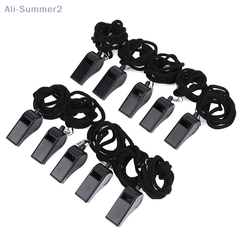{MX} 2/5/10개 야외 생존용 검정색 호루라기 끈 포함 휴대용 큰 소리 스포츠 호루라기 축구 농구 심판 훈련용