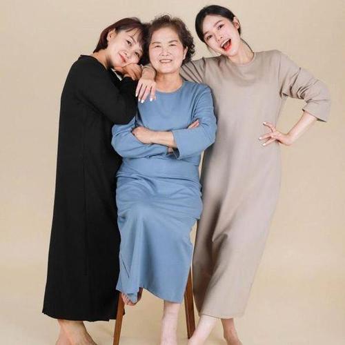 [다잇템]여자 노브라 홈웨어 힘산부 긴팔 롱원피스