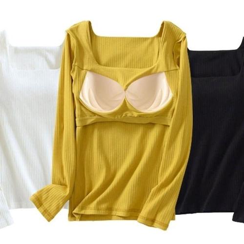 [브래지어 일체형 긴팔 티셔츠] 가슴 패드 캡내장 노브라티 브라탑 브라티 이너티 내복대용
