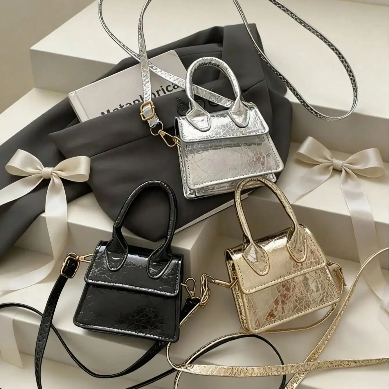 새로운 스타일의 미니 PU 스퀘어 백, 불규칙한 질감으로 독특하고 레트로한 캐주얼 크로스바디 및 핸드백입니다.