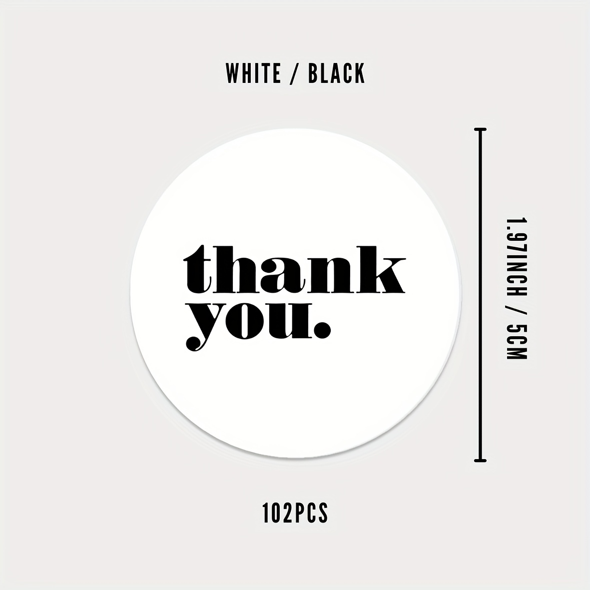 TEMU 102개 2인치 5cm 라운드 자체 접착용 단용 반가리 그래픽 패턴 영어 쓰여진 미니멀 감사 스티커, 흑백, 시원한 은색 톤, 종이로 만든, 인사 카드, 선물 상자, 파티 선물, 밀봉된 편지, 온라인 소매점, 소규모 기업, 지역 상점