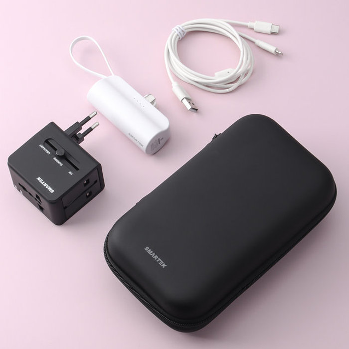 스마텍 [스마텍] [본사] 110V-250V 멀티충전 여행용 파우치세트 I 보조배터리 노트북 1500W 지원 ST-TS1