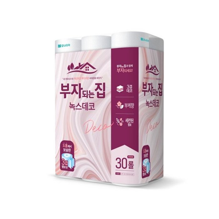 부자되는집 녹스데코 3겹 화장지 30m 30롤 3팩 (90롤)