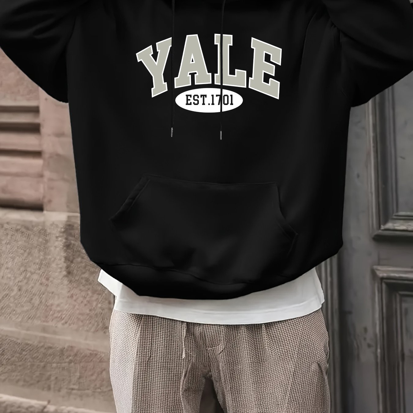 TEMU YALE 남성용 후드 플리스 스웨트셔츠, 캐주얼 웨어를 위한 다재다능하고 편안한 긴팔 풀오버, 심플한 슬로건의 아웃도어 스트리트 스타일에 적합하며 가을 및 겨울에 이상적입니다.
