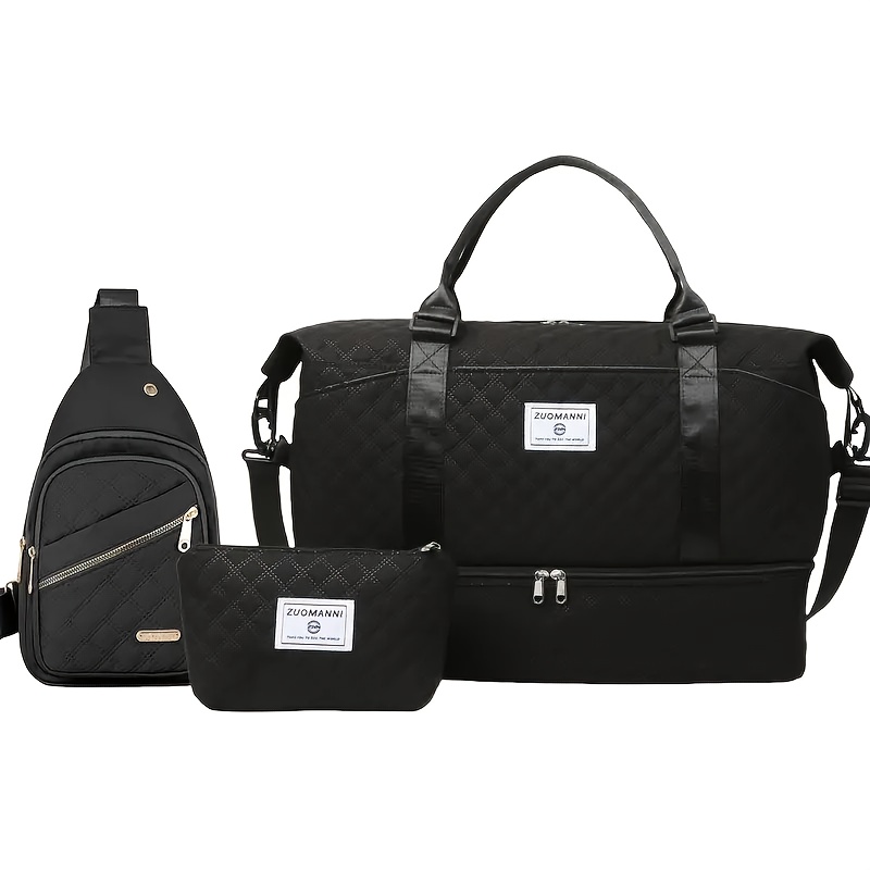 TEMU 스포츠 수하물 가방 여행 토트백 세트 3개, 손잡이 여행용 화장품 가방 체스트 백 어깨가방 세트, 대용량 독립 신발 수납 디자인, 야외 피트니스 여행 오버나이트 백, 5~7개의 여행 아이템을 담을 수 있음, 걱정 없는 견고한 손잡이