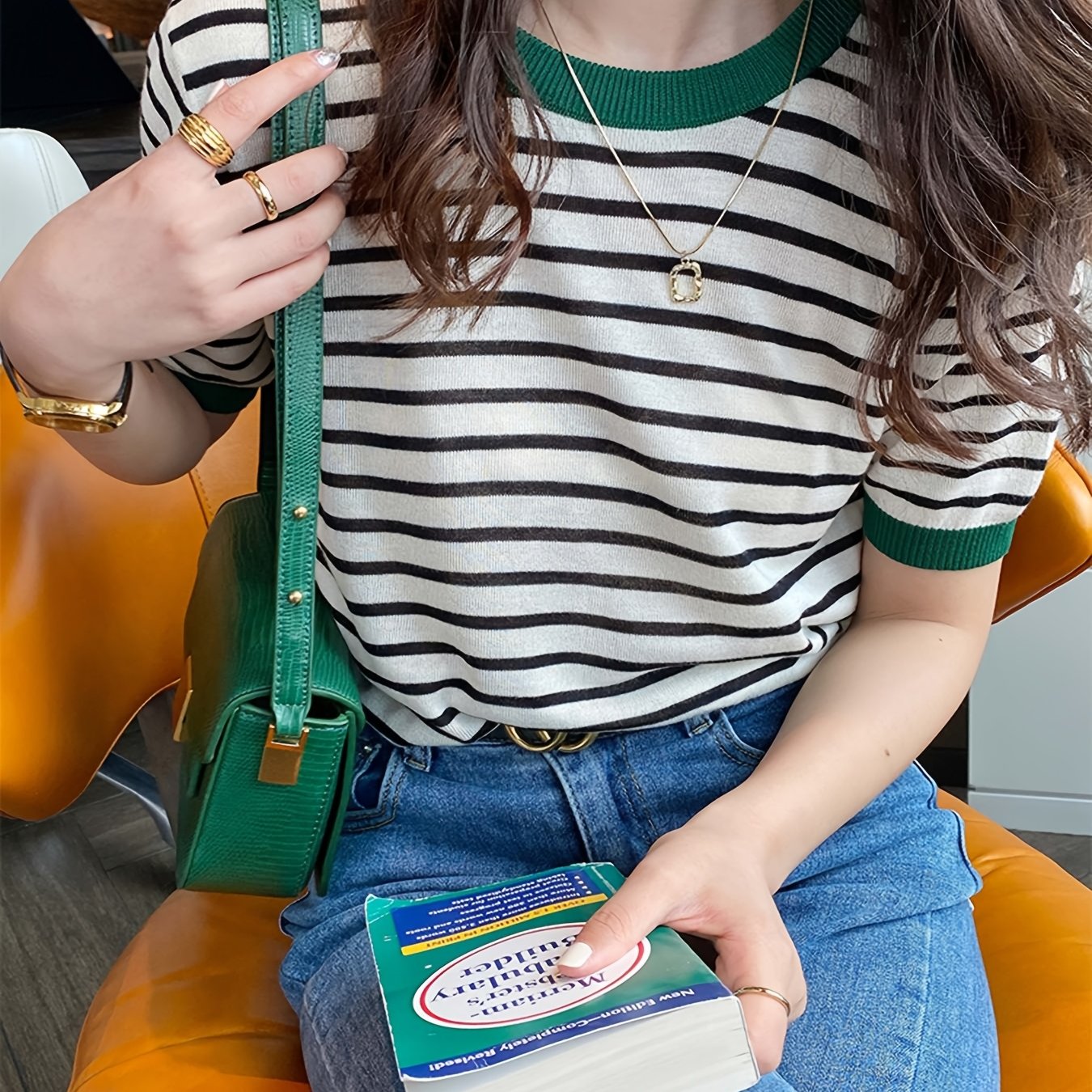 TEMU 여성용 라운드넥 반팔 티셔츠 - 중간 신축성의 단색 베이스 레이어 탑, 블라우스와 함께 착용 불가, 체형에 맞는 봄/여름 레이어링용, 캐주얼 및 드레시웨어, 손세탁 가능한 우아한 베이직 티