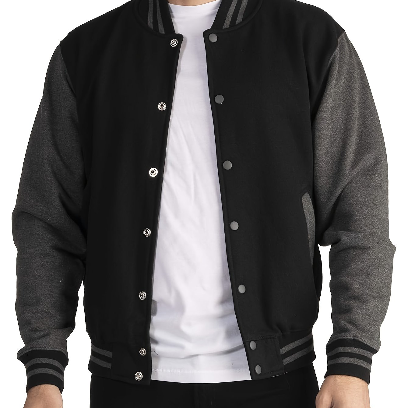 TEMU 남성용 플러스 사이즈 야구 점퍼 - 파이핑, 스냅 단추, 폴리에스터 - 일상 및 공식 행사용 가벼운 아우터 - 캐주얼 스포티 스타일, 플러스 사이즈 야구 점퍼, 플러스 사이즈 재킷, 남성용 플러스 사이즈 재킷, 남성용 플러스 사이즈 재킷 플러스 S, 남성 플러스 사이즈 야구 점퍼
