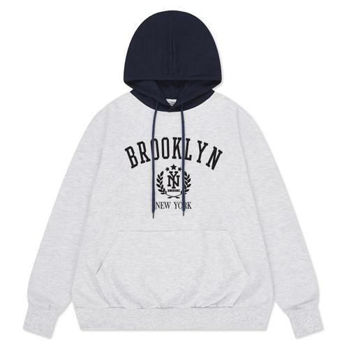 브루클린 뉴욕 오버핏 배색 후드티 남여공용 2컬러