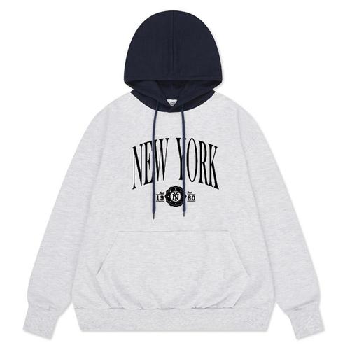 뉴욕 1980 오버핏 배색 후드티 남여공용 2컬러