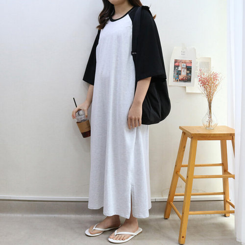 레이츄 / 모더니 레글런 빅사이즈 루즈핏 반팔 롱 원피스