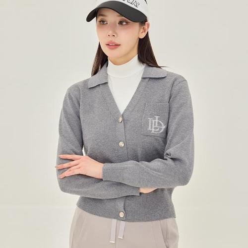 [제이투제이]여성골프웨어 자수포켓 카라 니트 가디건