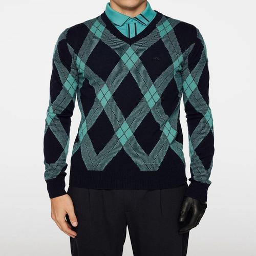 [제이린드버그]제이린드버그 골프웨어 남성 V넥 니트 스웨터 자카드 2025