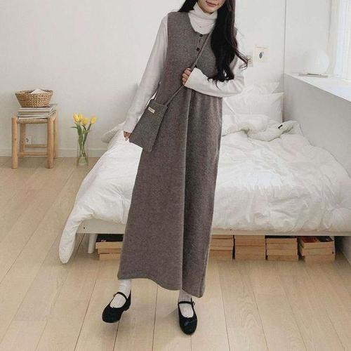 [귈림]() 골지버튼 원피스 니트조끼 투피스(GAWSE024P)
