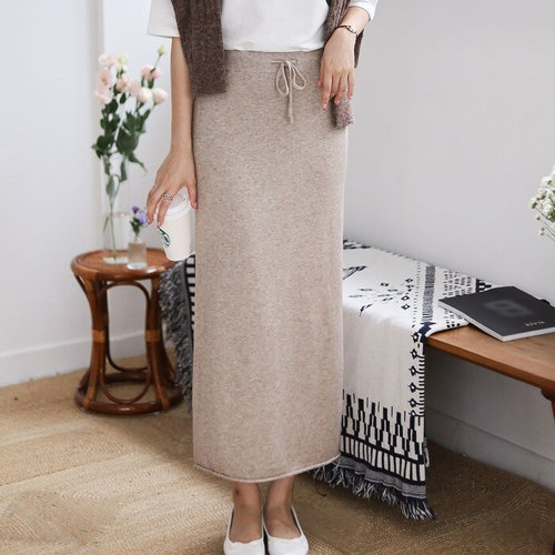 여성 베이직 롱스커트 허리밴딩 치마 니트