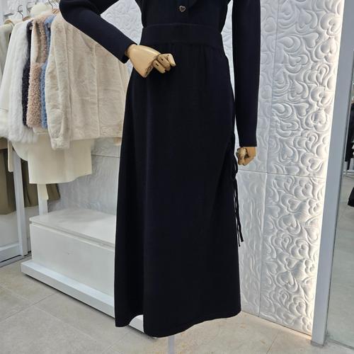 [샤틴]옆 셔링 니트 롱스커트 (S254K970)DG