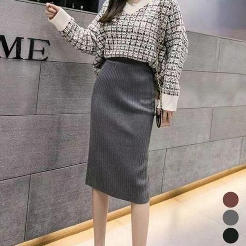 니트스커트 여성 슬림핏 캐주얼 니트 롱 스커트 치마