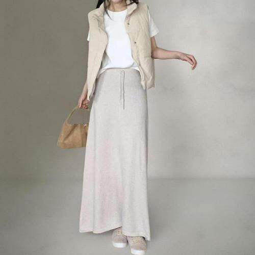 [옷자락] 여자 비스코스 심플 허리끈 니트 a라인 롱 스커트