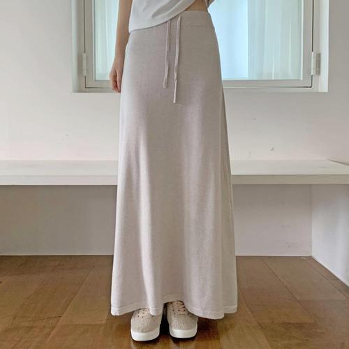 [옷자락] 여성 비스코스 심플 허리끈 니트 A라인 롱스커트