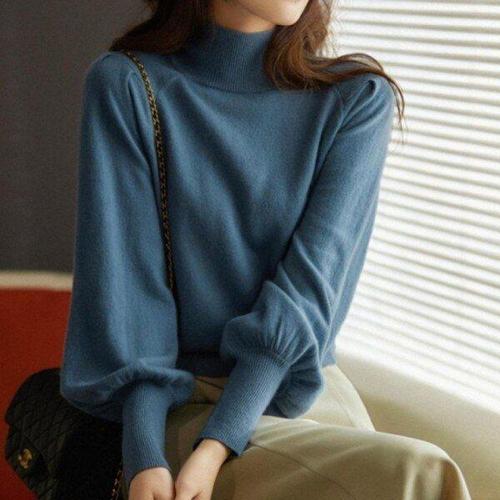 [모노무드]MNO 유니크 일상용 우먼 폴라넥티 롱슬리브 상의 심플패턴골지니트 블라우스