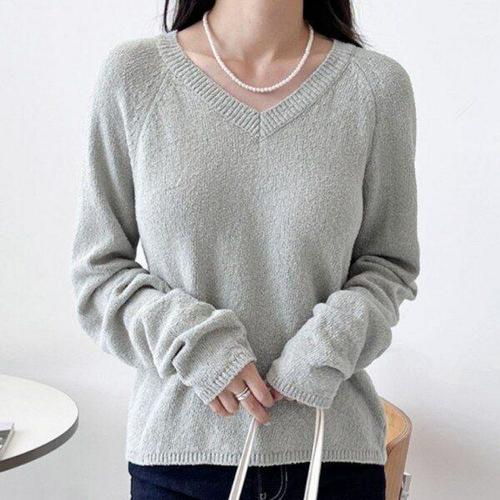 [다잇템]여성 비스코스 V넥 롱슬리브 가을용 니트티