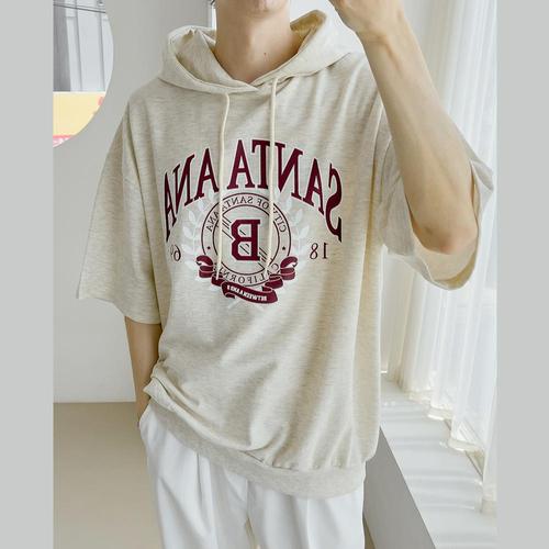 [리빌모아]남자 코튼 산타아나 반팔 후드 티셔츠 5C-TSH-Q066-오트밀
