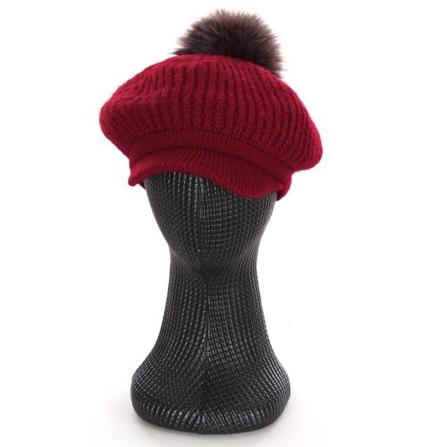 FW 신상 여성 겨울 방한 골지 니트 방울 빵모자 베레모 KM-WH-0794-레드
