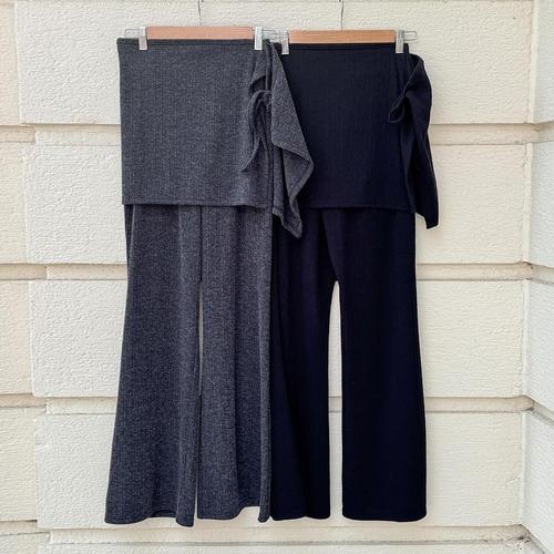 [옷자락] 여성용 리본 니트 랩스커트와 레이어드 부츠컷 팬츠 세트