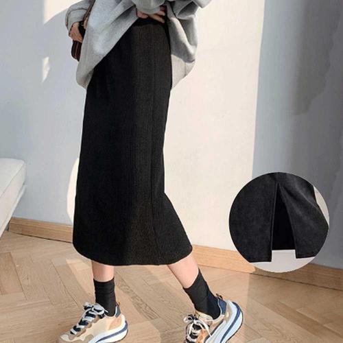 오피스룩 데일리룩 밴딩 트임 니트 스커트 기모 WFJKL1T