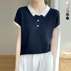 (1+1)[본보스튜디오]여성 넥라인 배색 소매라인 컬러포인트 입체패턴 카라니트