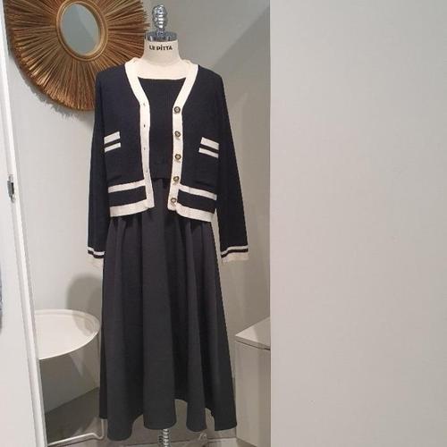 르피타 HC06 배색니트 투피스 세트(블랙) 배색니트 투피스 세트 L254BOKB03
