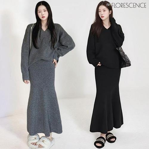 렐라웨어 / 루젤 후드 탑 앤 스커트 니트 투피스 세트 3color_RJY250914
