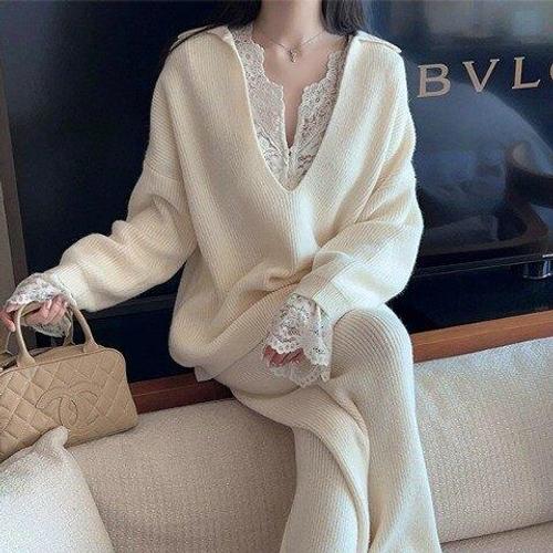 [아리엘스타일]니트세트 레이스디테일 여리여리핏 피로안투피스