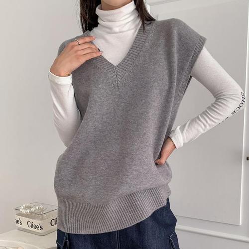[옷자락]여자 레이어드 양트임 박시 브이넥 니트조끼 롱원피스_P420069075