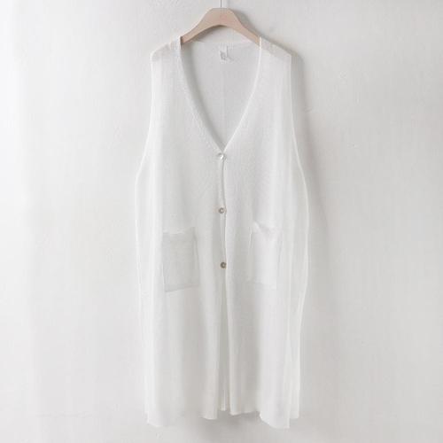 [옷자락]여자 캡소매 롱조끼 캐시 비스코스 브이넥 니트조끼