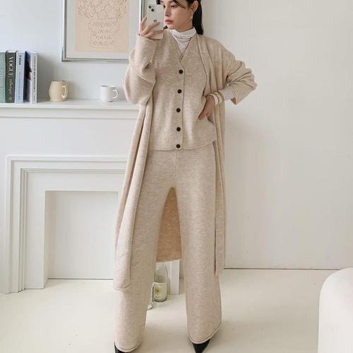 [다잇템]여자 롱가디건 니트조끼 V넥 3pcs 세트 (11269748A)