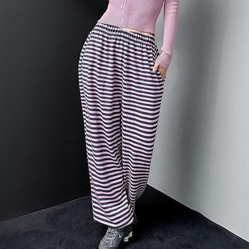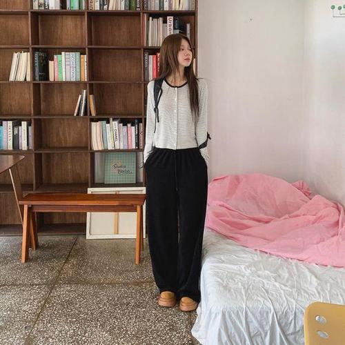 [신상오픈런]여성 스트라이프 와이드 팬츠 밴딩 가을 니트 바지