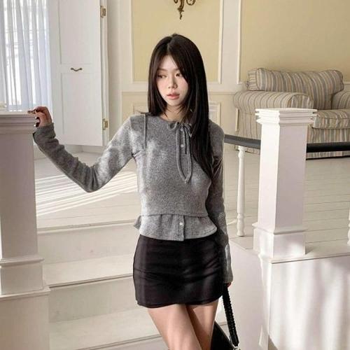 여성 GG66VW17 데일리 페이크 투피스 골지티셔츠 니트티 긴팔티