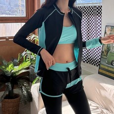 피넬젯 여성용 스트라이프 래쉬가드 5종세트, 민트