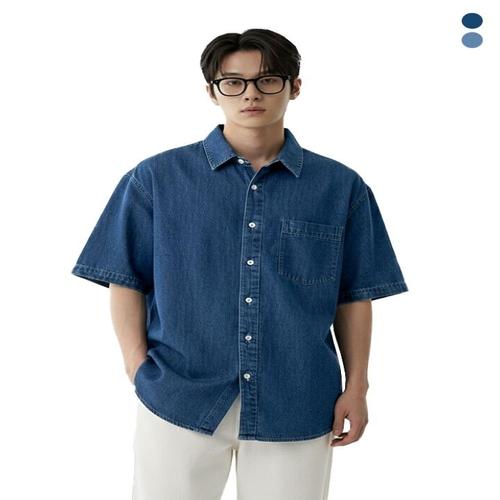골피아 SQ25M401 남녀공용 스트리트 릴렉스드 데님 반팔 셔츠