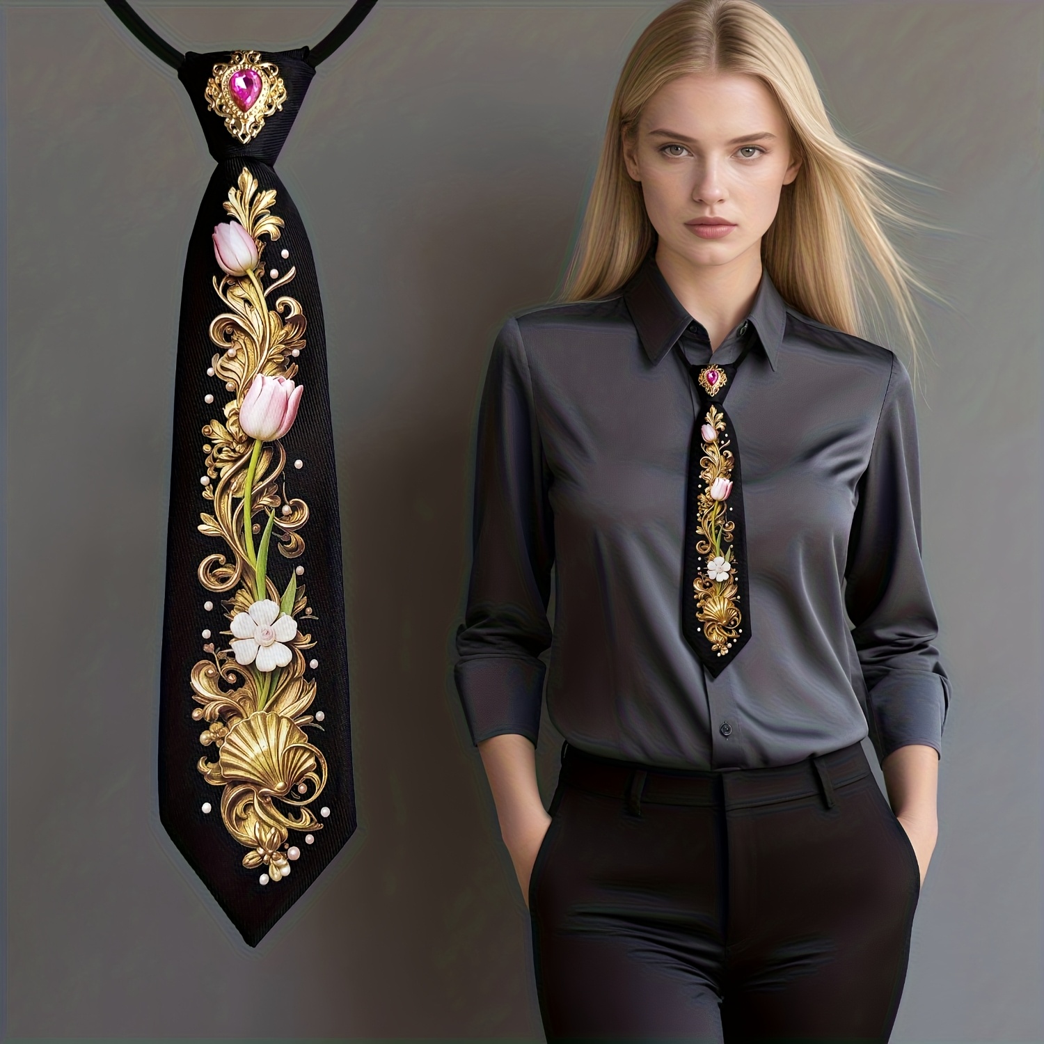 TEMU 고급 바로크 튤립 타이 | 예술적이고 패셔너블한 조합, 세탁기 사용 가능 또는 드라이 크리닝, 랜덤 프린팅 패턴의 원단.