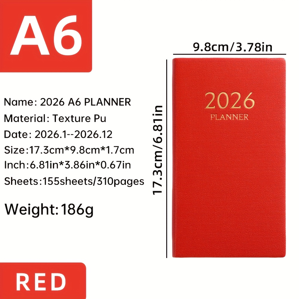 TEMU 에이6 플래너 - 우아한 일일 정리용, 월간 인덱스 포함, 310페이지 (155매), 생일/휴가 섹션 - 레드 또는 블랙 커버 - 사무실, 학교, 개인 사용 - 크리스마스, 추수감사절, 생일 선물 추천, 스타일, 고품질 종이|캘린더