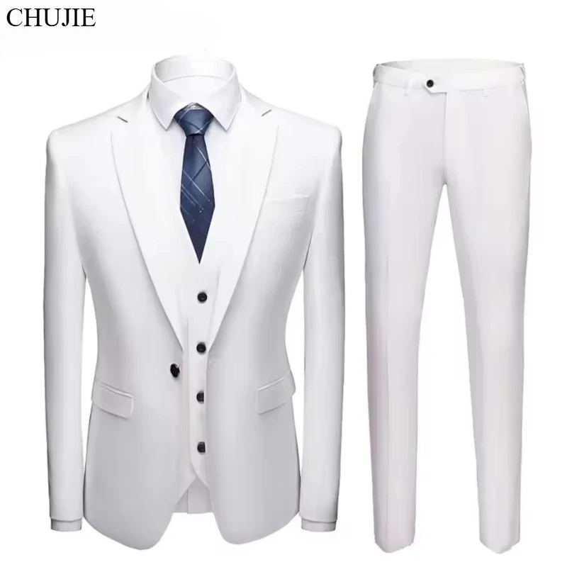 남성 웨딩 정장 3피스 세트 우아한 블레이저 풀 재킷 조끼 바지 포멀 패션 코트 2025 클래식 의상