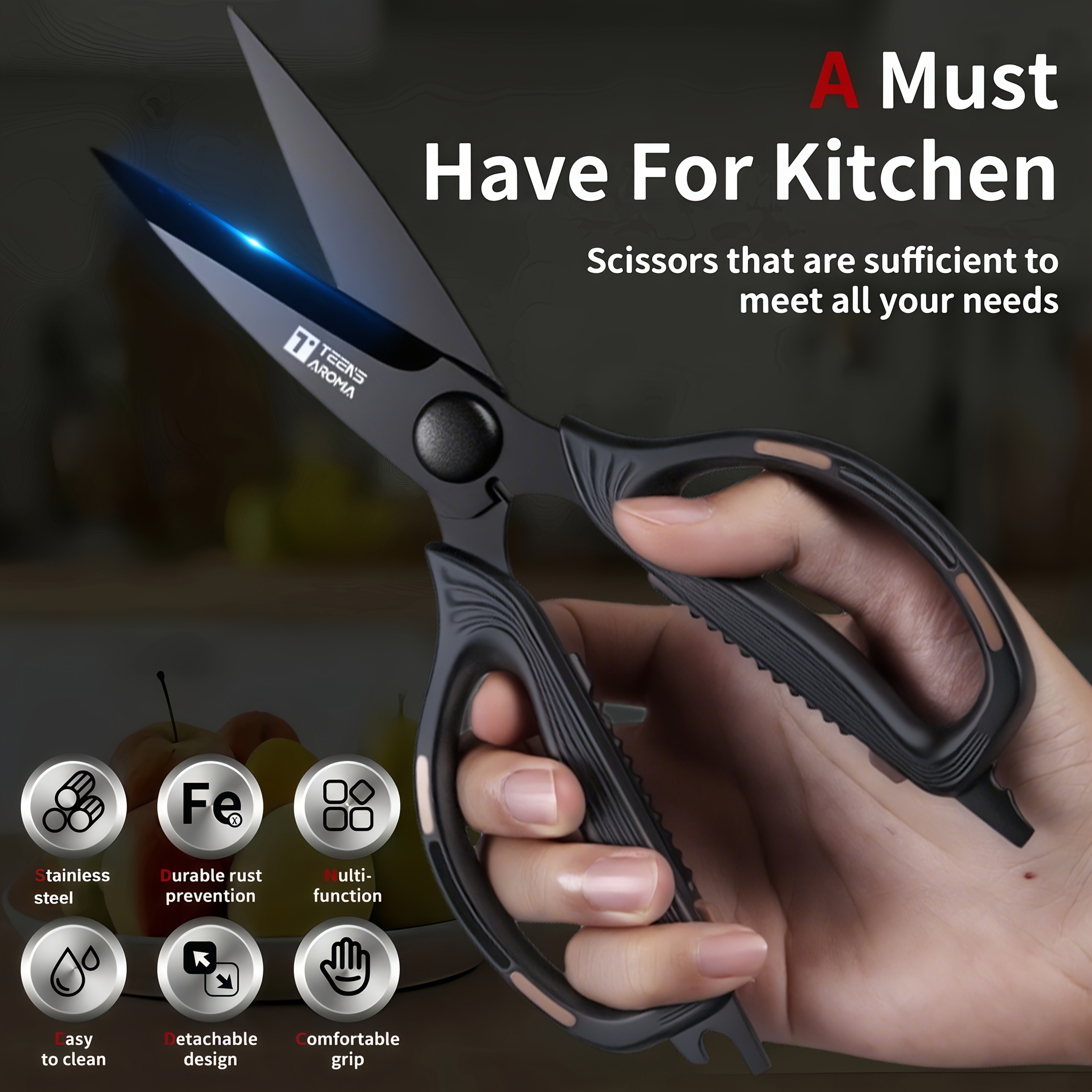 TEMU 헤비듀티 다목적 가위, 날카로운 칼날, 미끄럼 방지 그립 식품 준비 가위, 가정용 고기 절단 가위, 주방, 사무실, 재봉, 정원용, 여성용 가위, 초경량 기능성 가정용 가위, 블랙, 식기세척기 사용 가능